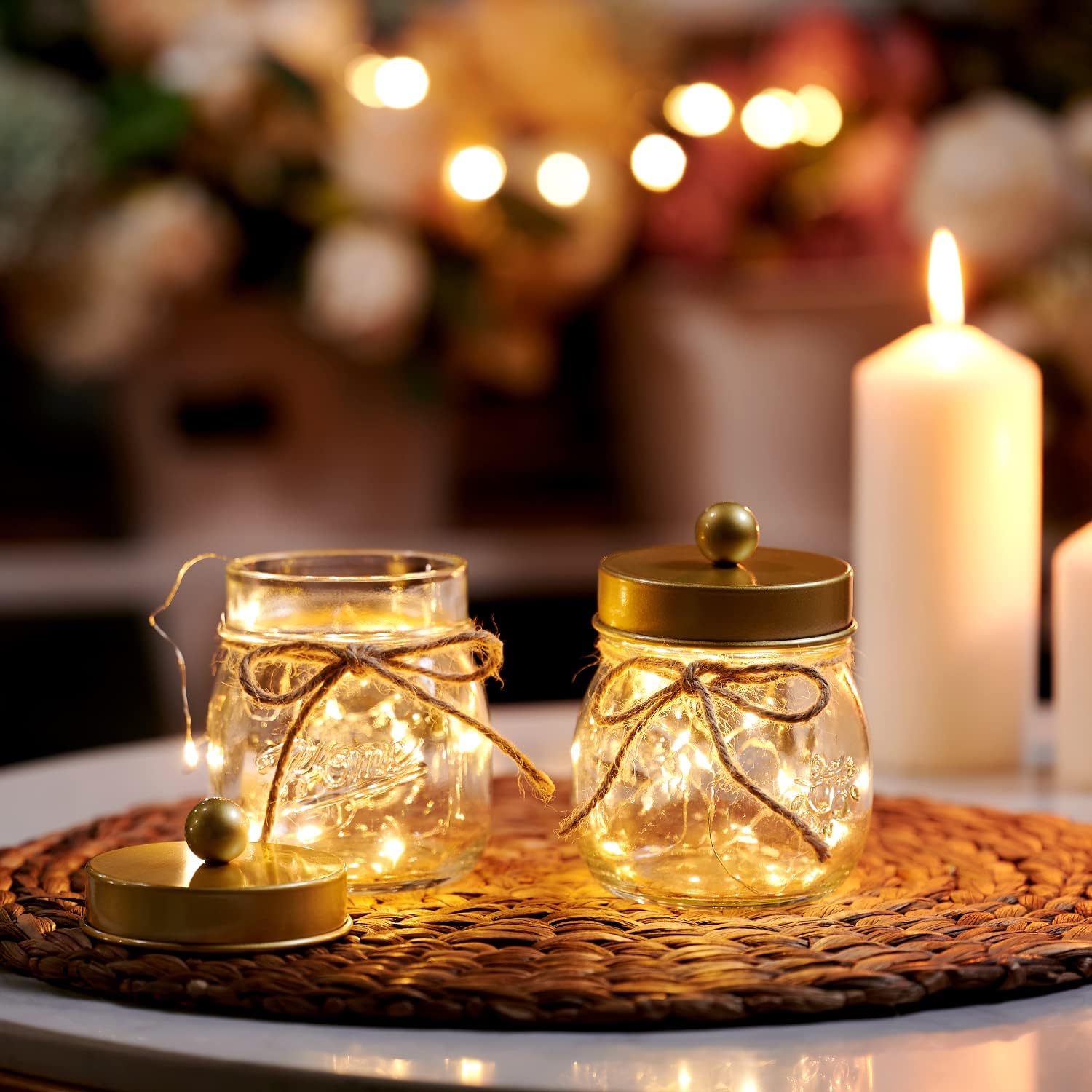 - ✔️Versatile Gift Idea: Ideal for a variety of occasions, this bathroom organizer and storage set is perfect for weddings, housewarming events, birthdays, Mother's Day, Thanksgiving Day, Christmas, New Year, bridal showers, and baby showers. It also makes an excellent gift for mothers, friends, sisters, co-workers, or anyone else, suitable for use throughout the year. The package includes: 2 pack glass mason jars with stainless steal lids. 2 Decorative Twines. 2 Cute Label Stickers.