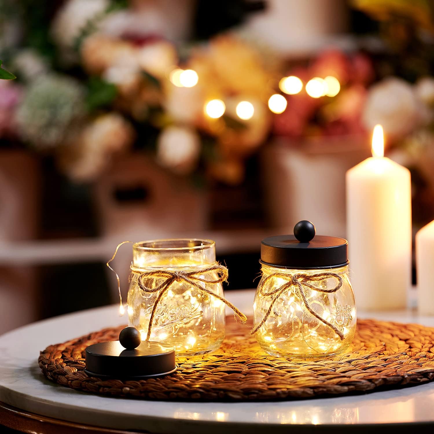 - ✔️Versatile Gift Idea: Ideal for a variety of occasions, this bathroom organizer and storage set is perfect for weddings, housewarming events, birthdays, Mother's Day, Thanksgiving Day, Christmas, New Year, bridal showers, and baby showers. It also makes an excellent gift for mothers, friends, sisters, co-workers, or anyone else, suitable for use throughout the year. The package includes: 2 pack glass mason jars with stainless steal lids. 2 Decorative Twines. 2 Cute Label Stickers.