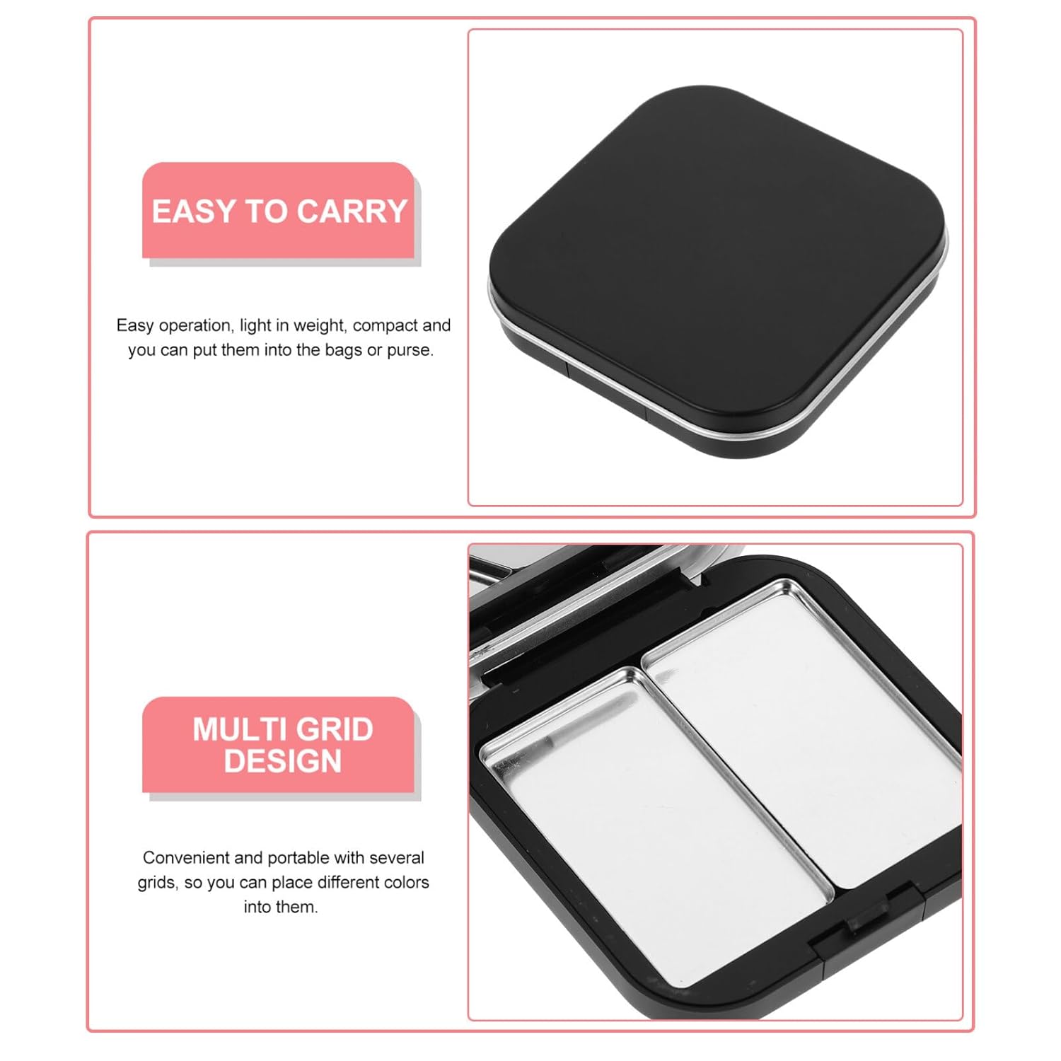 - Convenient and Portable: The eyeshadow box features several grids, allowing you to place different colors into them, making it convenient and portable for on-the-go use