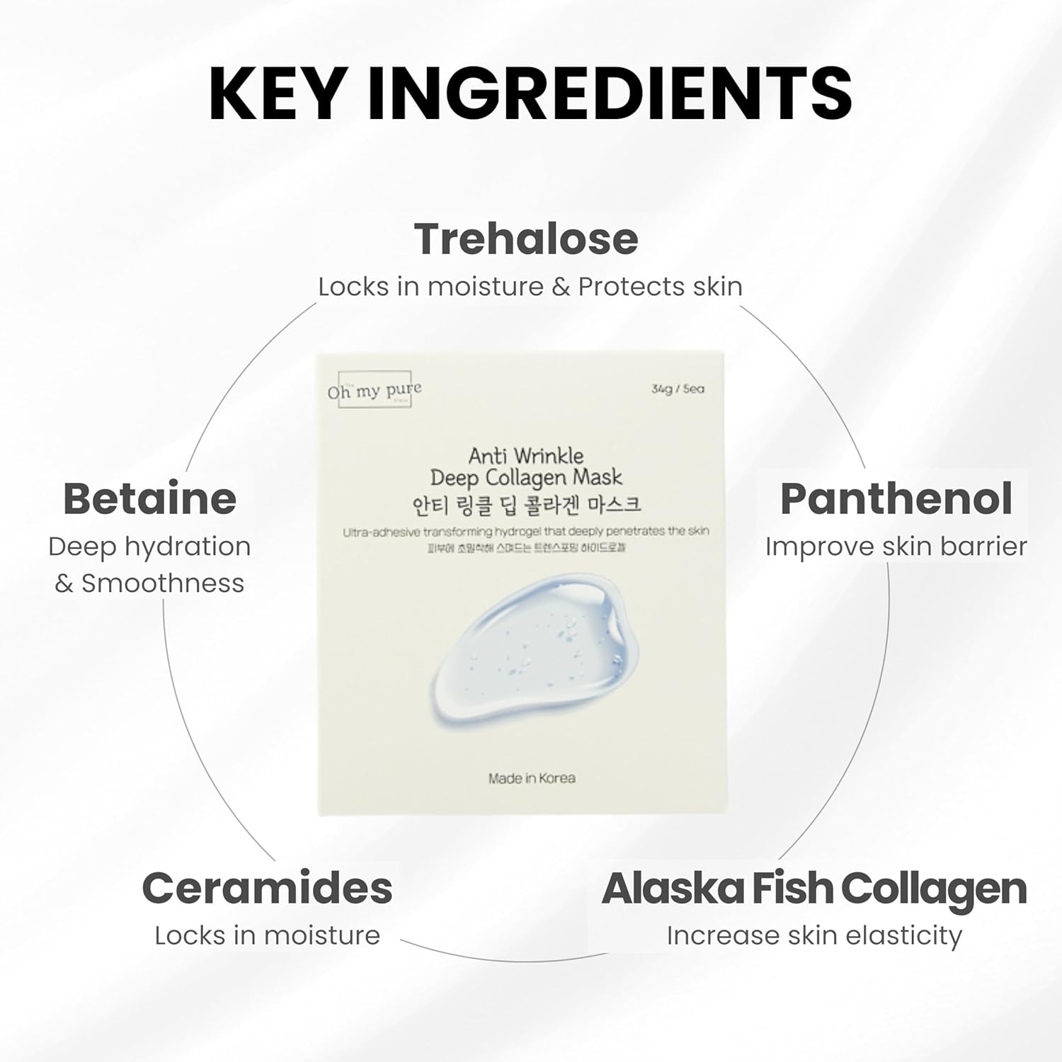 - Deep Collagen Hydration & Anti-Wrinkle Care – Premium fish collagen hydrogel sheet mask delivers intense hydration and visibly smooths fine lines & wrinkles for firmer, youthful-looking skin.