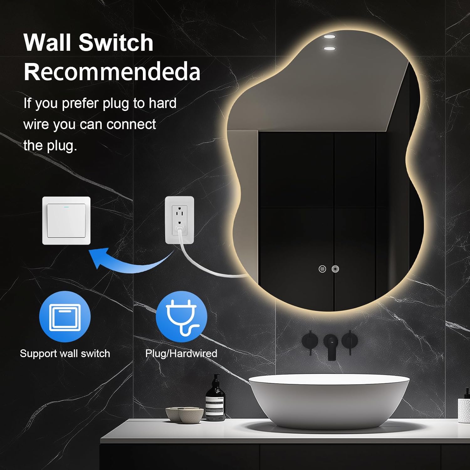 - Durable & Easy to Install: With a lifespan of over 50,000 hours, this UL-certified LED mirror is built to last. It supports both plug-in and hardwired installation and is compatible with wall switch control.